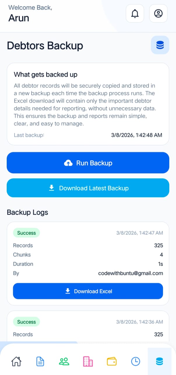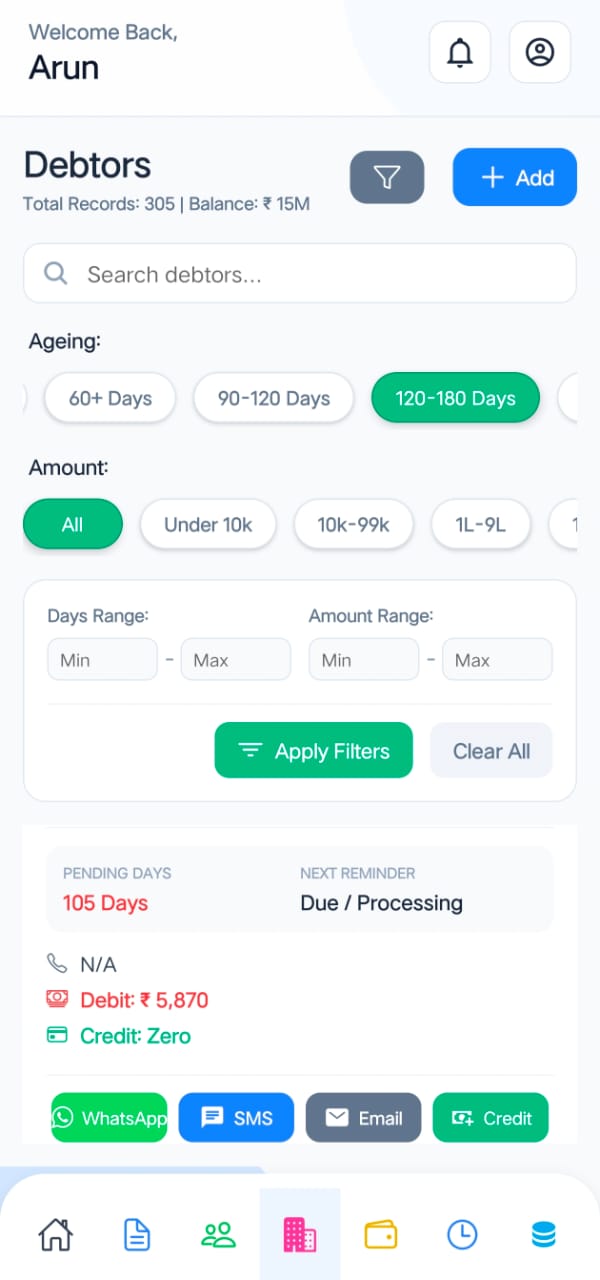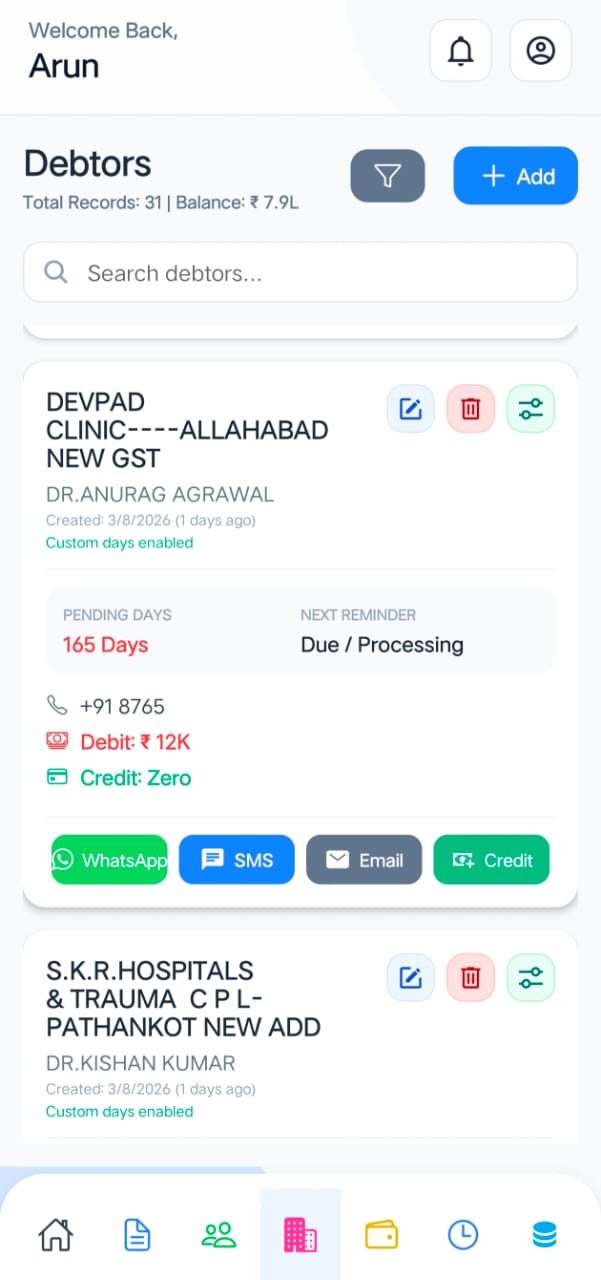 The native dashboard provides high-fidelity visuals and instant interactions, ensuring your debtor management is as smooth as a flagship mobile application.